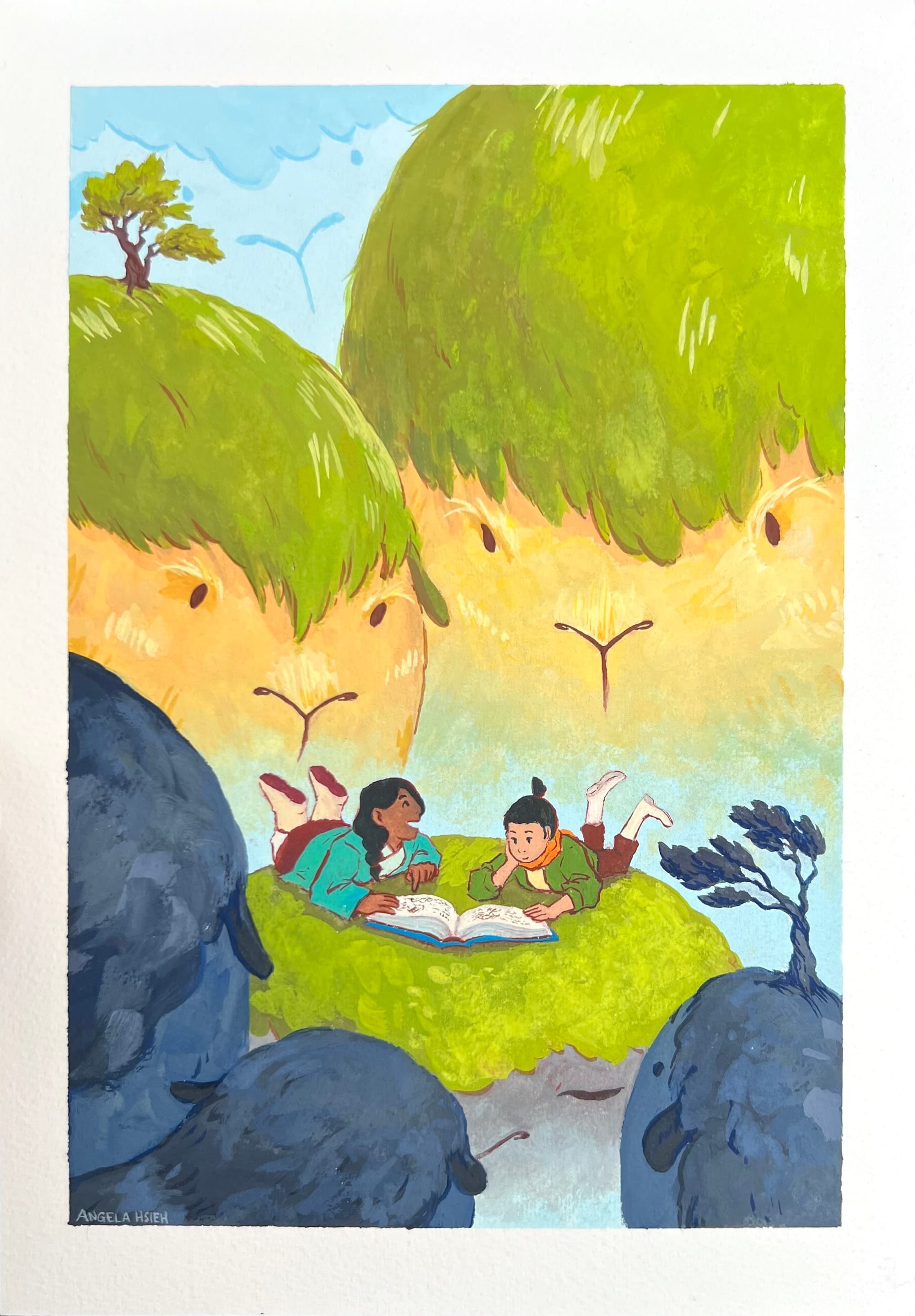 I work mostly in the digital medium for the sake of efficiency and portability, and I'll use gouache in plein air studies, but every once in a while I'll make an illustration using gouache. It's a nice change of pace, even if I inadvertently find myself making the double-tap-to-undo gesture on the paper.